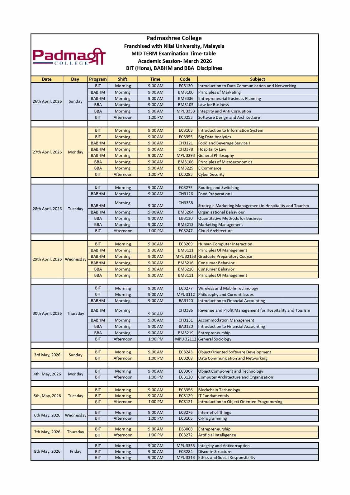 B. Tech food students of Padmashree College conduc