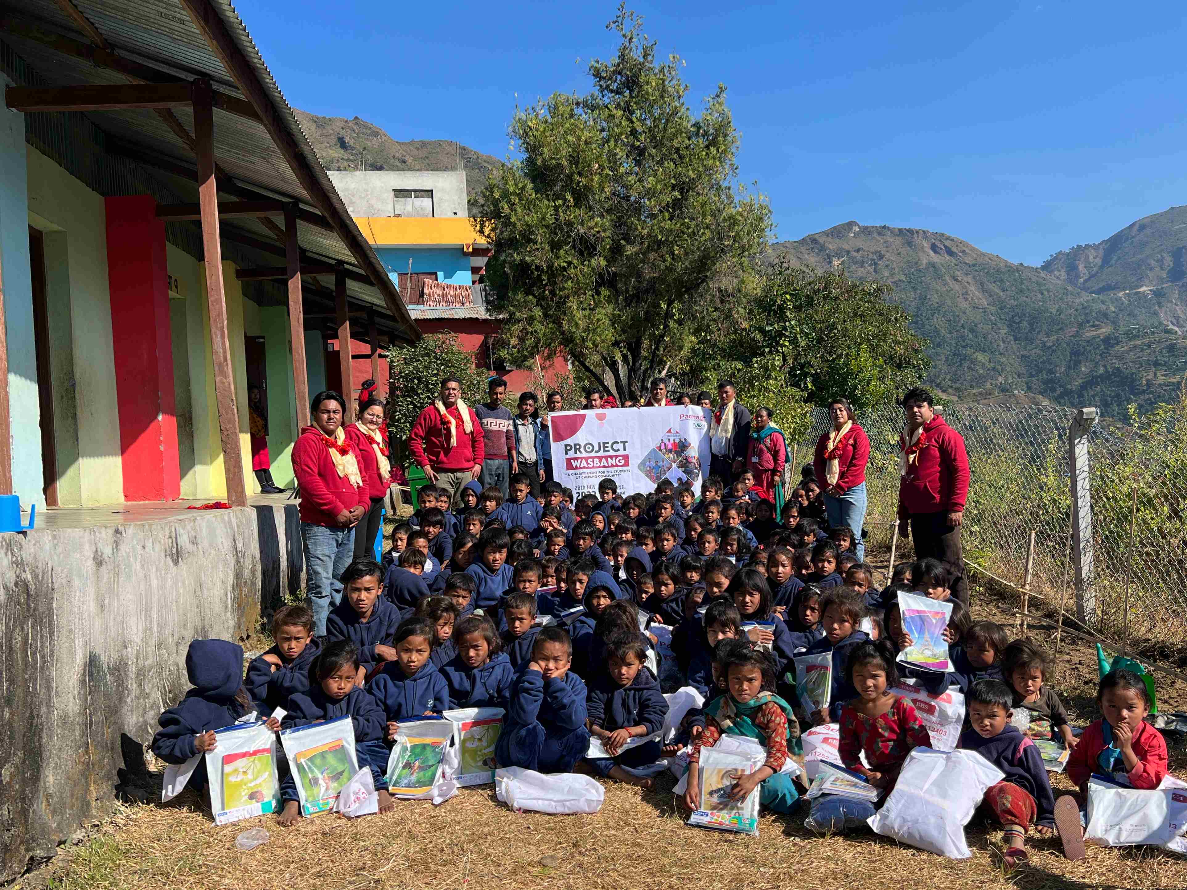 In order to address the deprived community, particularly the students of Shree Harara Bisauna Primary School (श्री हररा बिसाउन आधारभुत विद्यालय) and Shree Rashtriya Primary School (श्री राष्ट्रिय आधारभुत विद्यालय), the Project Wasbang was conceived. The students travelled to the venue with donations to be delivered on Mangsir 12, 2079, leaving Padmashree College early in the morning. The event's coordinator and vice principal of the college, Mr. Hemant Gautam, accompanied the volunteers. Ashok Kumar Praja, Ward Head of Rapti Municipality Ward No. 13, Principal of the School, Pramod Kumar Shah, Female Union Representative Heema Kumari Sunar, and Teacher's Representative Som Bahadur Praja were the key attendees at the event.